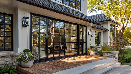 These doors feature multiple panels that slide and stack together. They are ideal for creating an indoor-outdoor flow with wide, unobstructed openings.