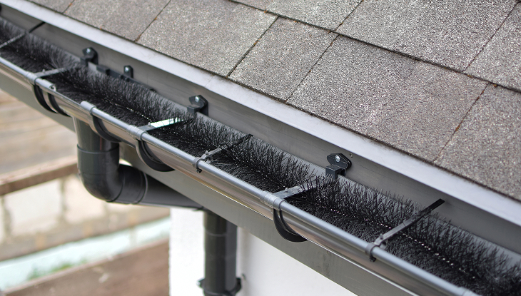 Brush guards consist of large bristles that sit inside the gutter, blocking debris while allowing water to pass through. They usually cost between $3 and $4.50 per linear foot.